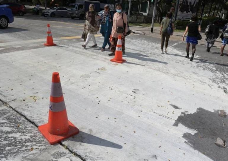 Watch out: Spilled paint at Eunos has pedestrian and cyclist slipping and sliding